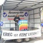 Die Protesttage haben die Friedensbewegung einen guten Schritt vorangebracht. Es ist uns gelungen, zeitgleich an vielen Orten aktiv präsent zu sein und mit vielen Menschen ins Gespräch zu kommen. Wir konnten intensiv über die Gefahren und Kosten der Hochrüstung informieren und aufklären. Auch in vielen kleineren Städten und Orten haben wir gezeigt, es tut sich etwas für den Frieden. Die Aktionen lokaler Friedensbündnisse auf den Straßen und Plätzen wurden unterstützt von engagierten Menschen aus Gewerkschaften, Umweltverbänden und christlichen Initiativen. Mitglieder verschiedener Parteien und politischer Bewegungen waren dabei und unterstützten aktiv unsere Proteste.